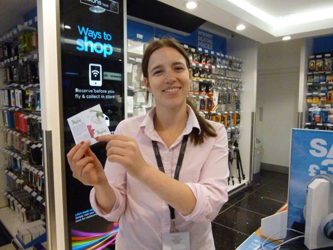 Giving out the cards in Bristol Airport Duty Free!